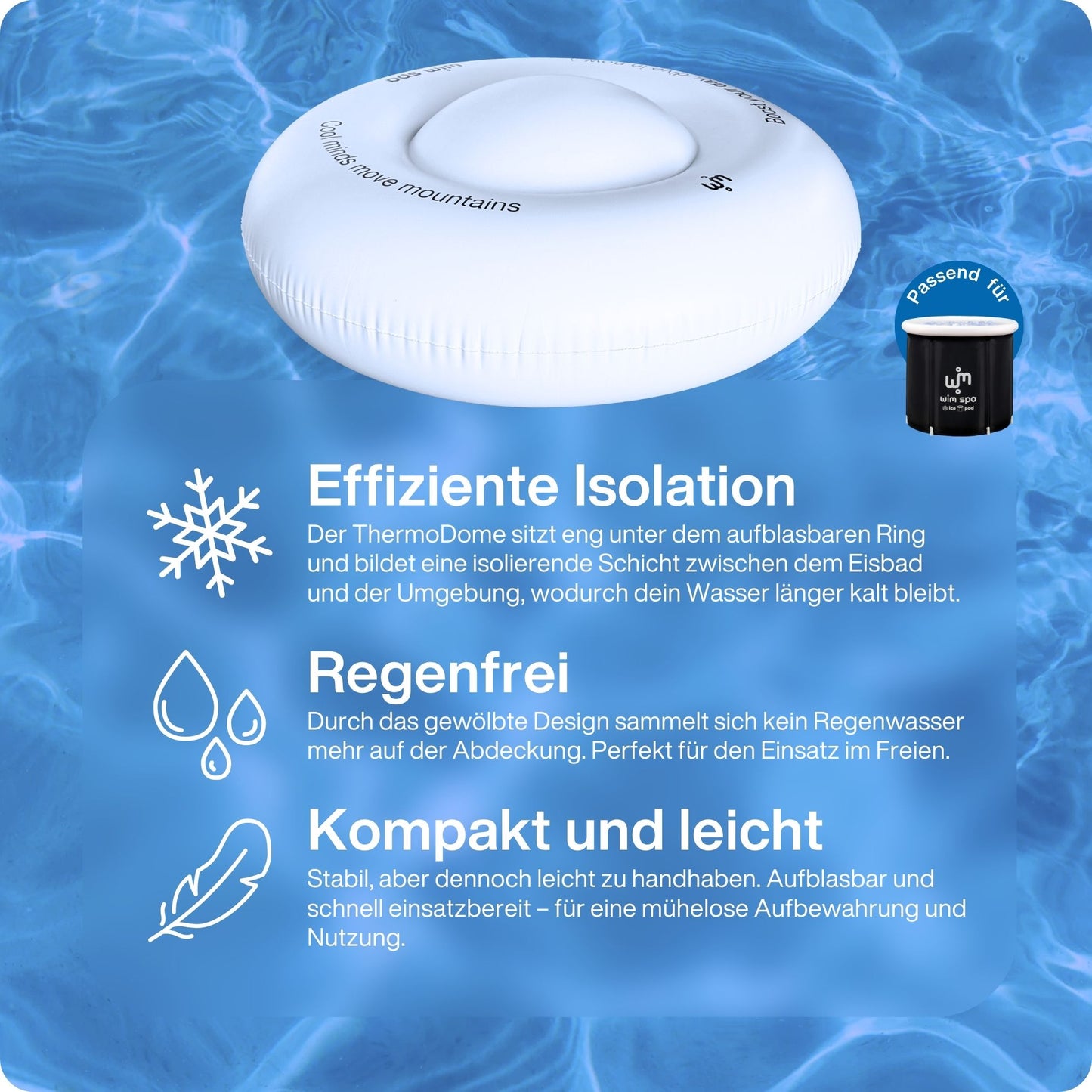 Save 30%The ThermoDome ice bath cover (80 cm) reliably protects your ice bath from heat, dirt and evaporation.